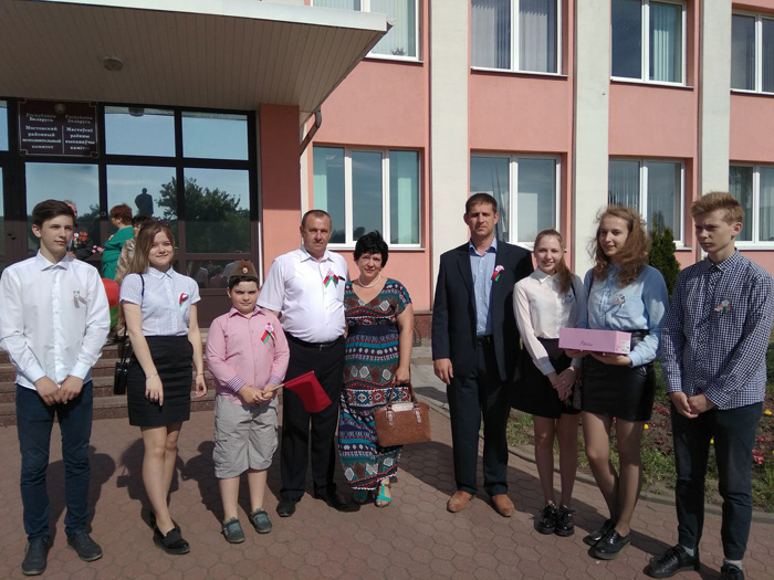 9 мая у здания Мостовского районного исполнительного комитета активисты ОО «БРСМ» встречали членов исполкома, представителей военкомата, малолетнего узника, а также многих других жителей Мостовского района, чтобы в торжественной обстановке прикрепить бутоньерки – символ Великой Победы.