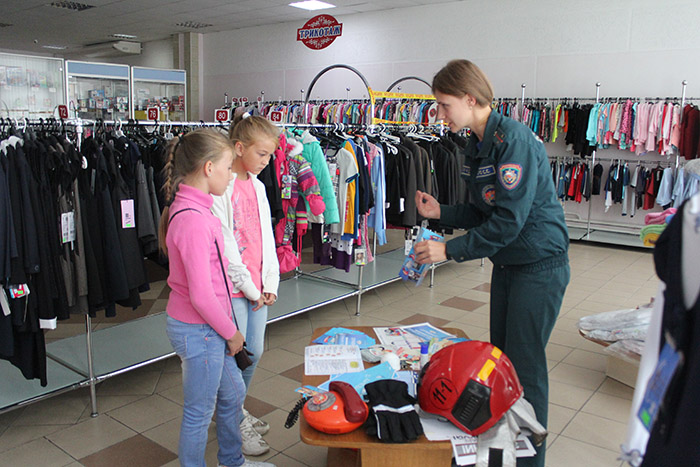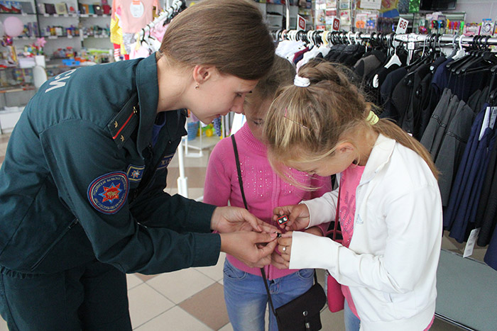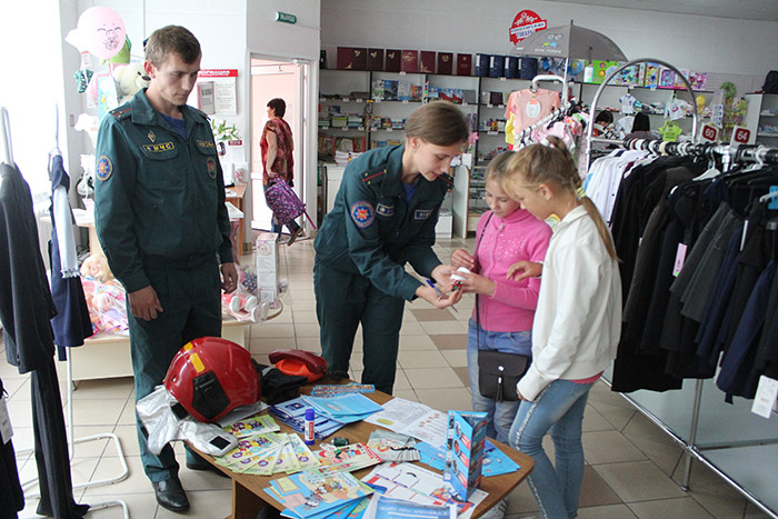 Проходит акция в два этапа: с 19 по 31 августа инспекторы сектора пропаганды и взаимодействия с общественностью Михаил Мекеко и Светлана Жудро, а также главный бухгалтер райкома БРСМ Наталья Омелько, волонтёры Вера Каблукович и Диана Борисова посещают объекты торговли, специализирующиеся на реализации детских товаров. Здесь расположились интерактивные площадки, на которых в игровой форме напоминают детям правила пожарной безопасности. Алгоритм действий при вызове спасателей, номера экстренных служб, как вести себя при возгорании в квартире, как пользоваться автономным пожарным извещателем – это и не только в иллюстрациях узнали ребята при помощи спасателей. На витринах магазина мальчики и девочки нашли боевую одежду и огнетушители, смогли примерить плотную «спецовку» и крепкий шлем, почувствовав себя сотрудником МЧС. Также ребята отвечали на вопросы по правилам пожарной безопасности. За верные ответы и активное участие все получили памятные подарки с логотипом МЧС. К слову, спасатели отметили, что Маша, Захар и Варенька Полинские обладают большим багажом по пожарной безопасности.