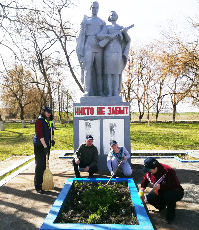 – Возле памятника мы высадили цветы, обновили постамент, покрасили скульптуру, навели порядок на прилегающей территории: убрали накопившийся за зиму мусор и листву, – рассказывает председатель районного объединения профсоюзов Елена Рогацевич, которая взяла на себя роль руководителя работ.