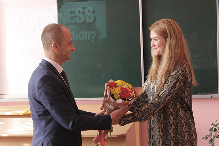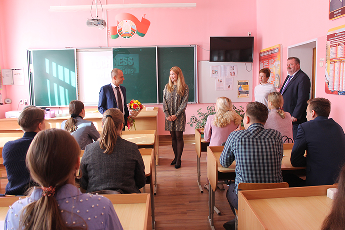 Приятным сюрпризом для учителей английского языка гимназии №1 г. Мосты Дарьи Широкой и Екатерины Войтехович стало присутствие у них на уроках председателя Мостовского райисполкома Юрия Валеватого и начальника управления образования Валентина Тихоновича. Гости тепло и сердечно поздравили педагогов, которые только начинают свой профессиональный путь.