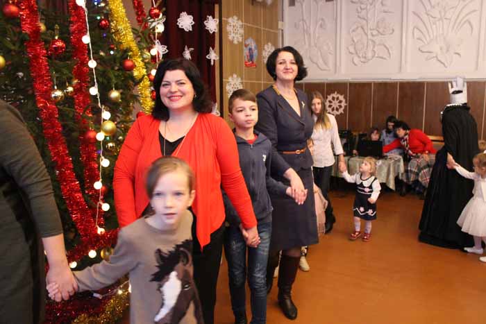 А в весёлый хоровод у новогодней ели девчонки и мальчишки стали вместе с заместителем председателя райисполкома, председателем Мостовской районной организации ОО «Белорусский союз женщин» Мариной Давыдик, заместителем начальника управления образования райисполкома Инной Болтрукевич, председателем Мостовской районной организации Белорусского профсоюза работников образования и науки Татьяной Новик.