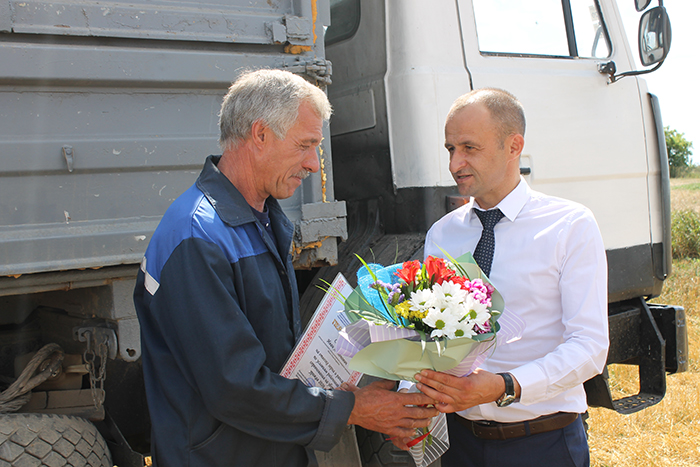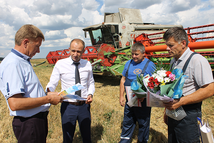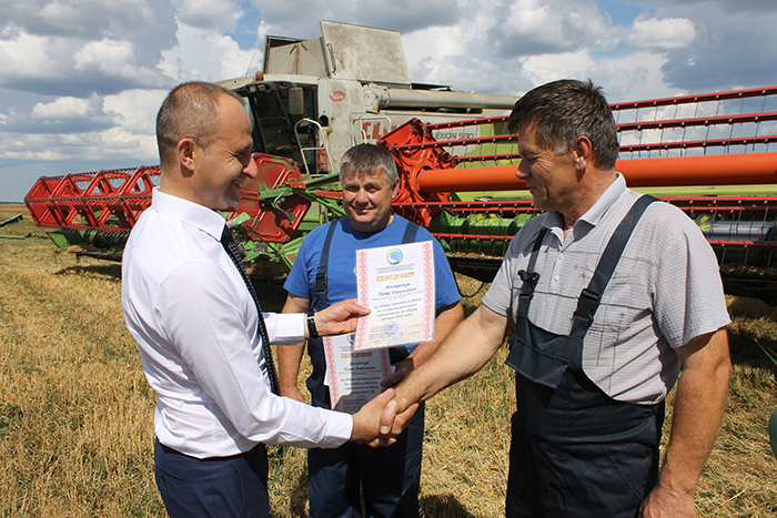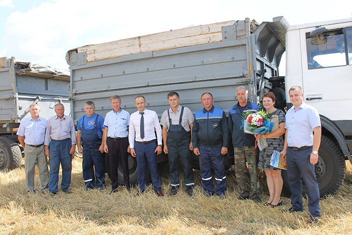 Поздравить добросовестных и усердных работников с высоким результатом прямо в поле приехал председатель районного исполнительного комитета Юрий Валеватый.