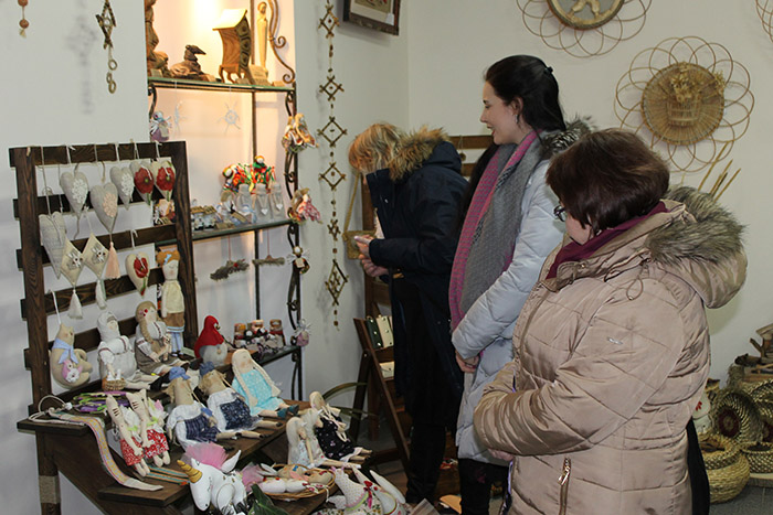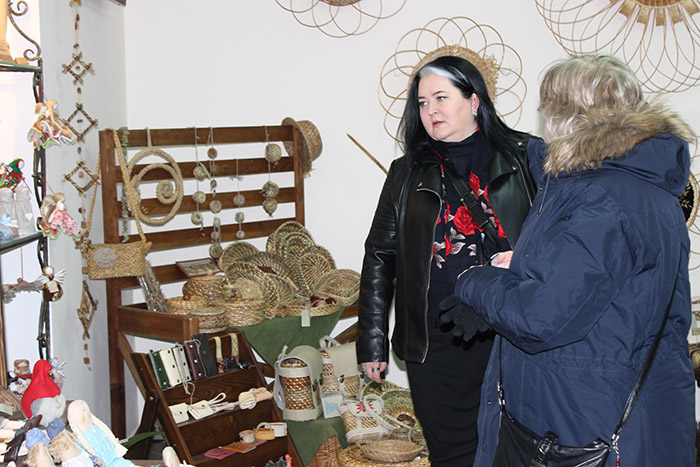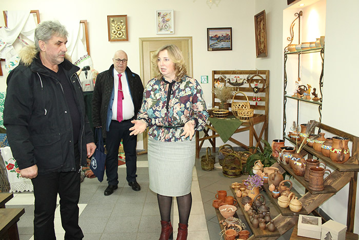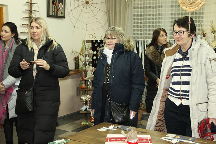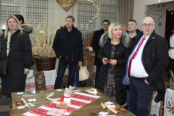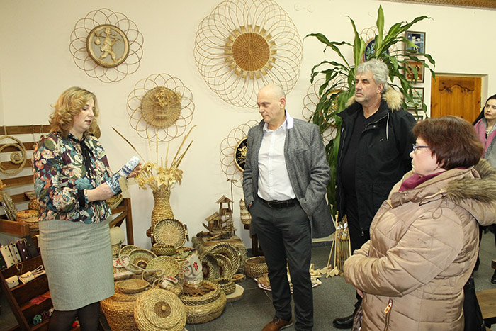 Знакомство с Мостовщиной иностранные гости начали с районного центра ремёсел. Его директор Жанна Новик рассказала об традиционных народных ремёслах и техниках, в которых работают мастера центра. В частности, они сумели восстановить практически утраченную технику спирального плетения из травы.