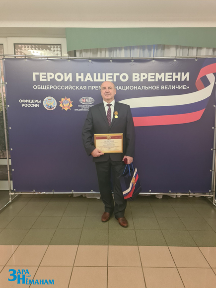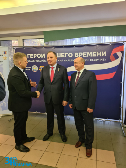 Диплом лауреата премии «Честь и достоинство» в номинации «Герои бизнеса» и нагрудный знак на георгиевской ленте вручил Сергею Ососову Герой Российской Федерации Анатолий Кнышов.