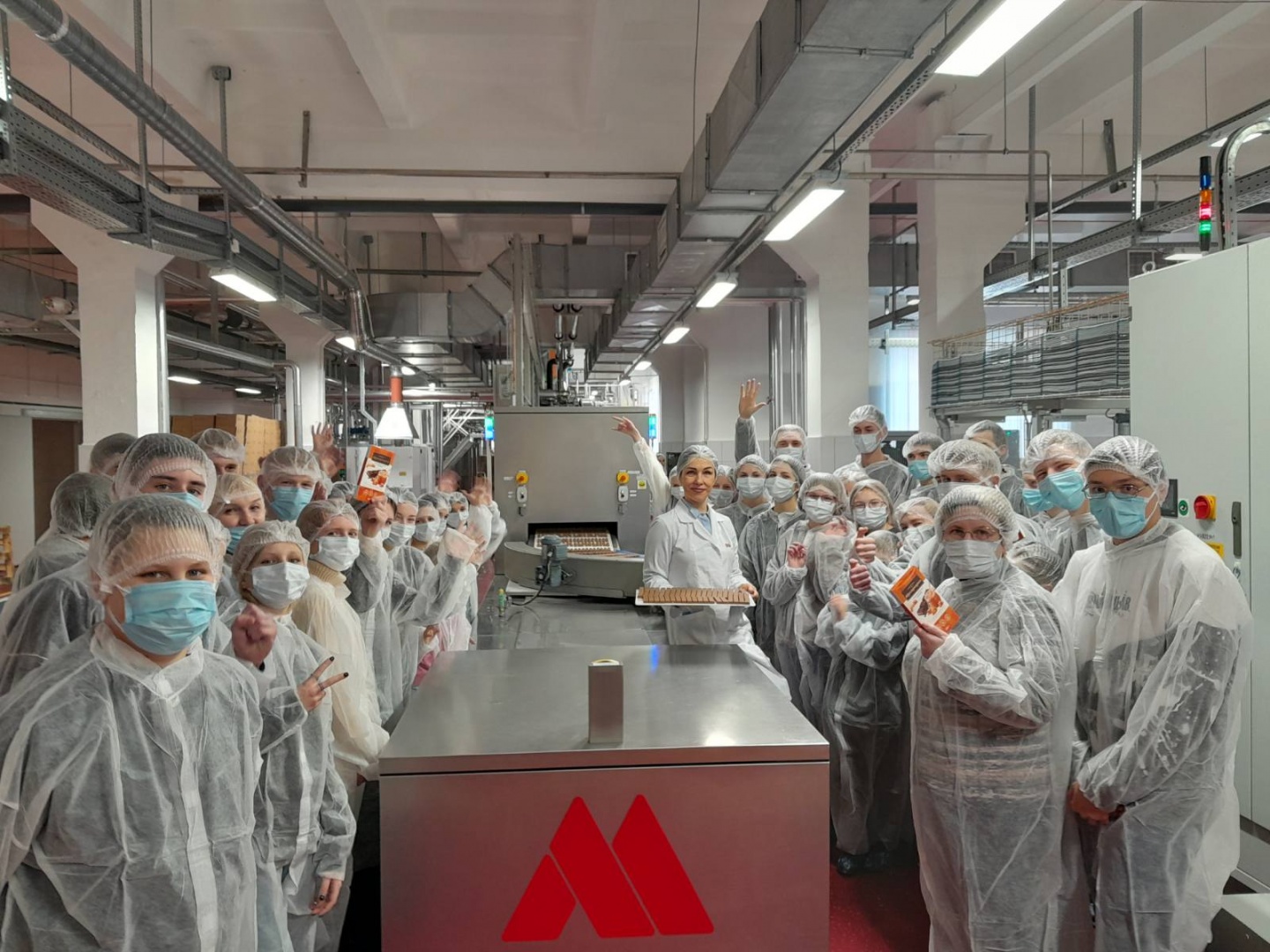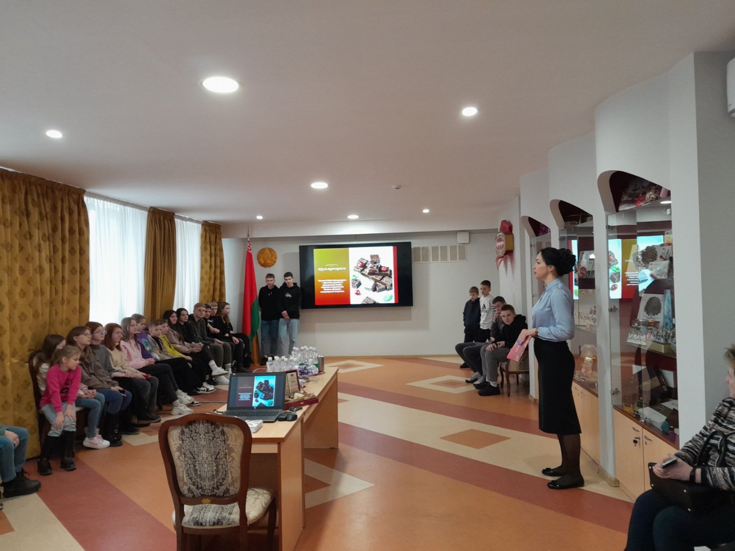 Знаёмства з прадпрыемствам прайшло ў дэгустацыйнай зале, дзе нас пазнаёмілі з гісторыяй фабрыкі, прадэманстравалі сыравіну для вытворчасці шакаладу, расказалі пра структуру прадпрыемства і асаблівасці працы. Доўгачаканая экскурсія па цэхах пачалася з цукерачнага, дзе дзеці з захапленнем назіралі працэс вырабу шакаладных цукерак. Праходзячы па вафельным і шакаладным цэхах, мы знаёміліся з тэхналогіяй вытворчасці прысмакаў, дзівіліся працэсам вытворчасці любімых слодычаў. Прыемным дадаткам да экскурсіі стала дэгустацыя цукерак. І вядома ж падарунак з фабрыкі!