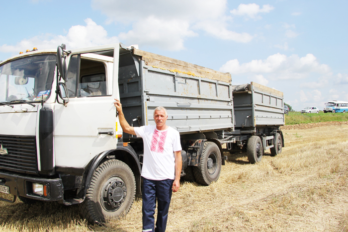 В обыкновенные дни водитель трудится в выданной хозяйством спецодежде. А для получения награды одевает подаренную ему праздничную вышиванку. Красиво и настроение улучшает.