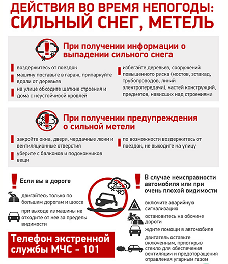 При получении информации о выпадении сильного снега, спасатели МЧС рекомендует по возможности оставаться дома, воздержаться от поездок по городу и району на личном автотранспорте. Если появилась такая необходимость, то нужно сообщить членам семьи или соседям, куда вы идёте или едете и когда вернётесь.