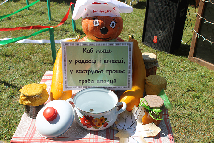 Не менее оригинальны были и работники ОАО «Черлёна». «Девушка» из кукурузы, «повар» из тыкв и кабачков с призывом класть деньги в кастрюлю, чтобы жить в радости и достатке, клумба к 75-летию Гродненской области – удивиться и воодушевиться здесь было чем.