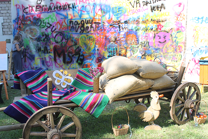 Настоящее раздолье для детского творчества в стиле граффити царило на подворье ОАО «Мостовчанка». Здесь специально для ребят была натянута плёнка. Баллончик с краской в руки – и твори! И юные посетители подворья творили – с азартом, радостью и неуёмной фантазией.