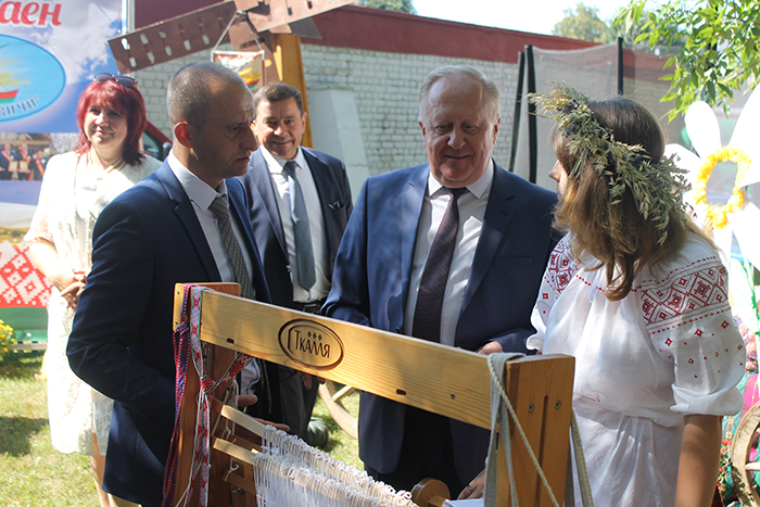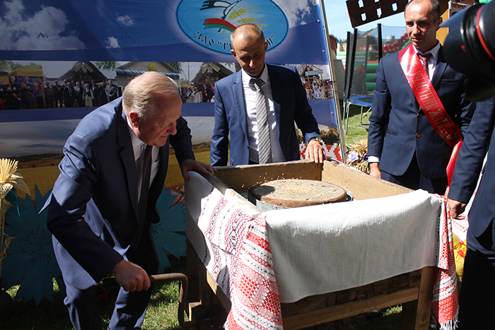 На подворье ЗАО «Гудевичи» все желающие имели возможность поучаствовать в мастер-классе по ткачеству, а также попробовать смолоть зерно на тяжёлых каменных жерновах. Ох и нелёгкое это дело! Но многие мужчины с интересом изучали принцип работы мельницы наших предков, а заодно и свои силы проверяли.