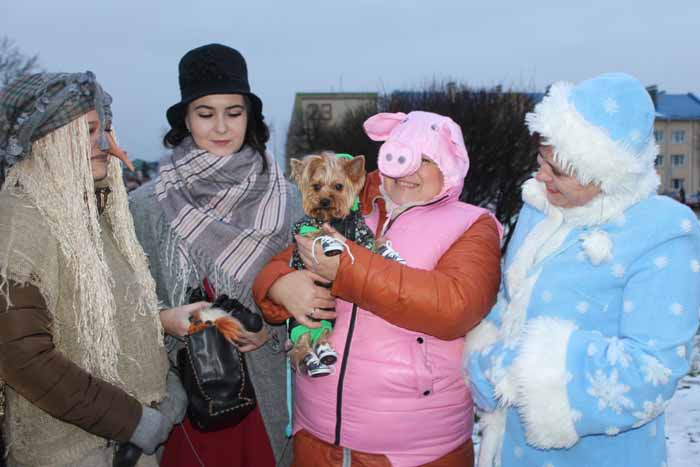 Возглавили праздничное шествие обаятельные Поросята, в которых преобразились работники Центра социального обслуживания населения Мостовского района. И это не случайно, ведь символом наступающего 2019 года станет Свинья. Присутствовали на празднике и Собаки, а представители коллектива детского сада №3 привели с собой живого символа года уходящего.