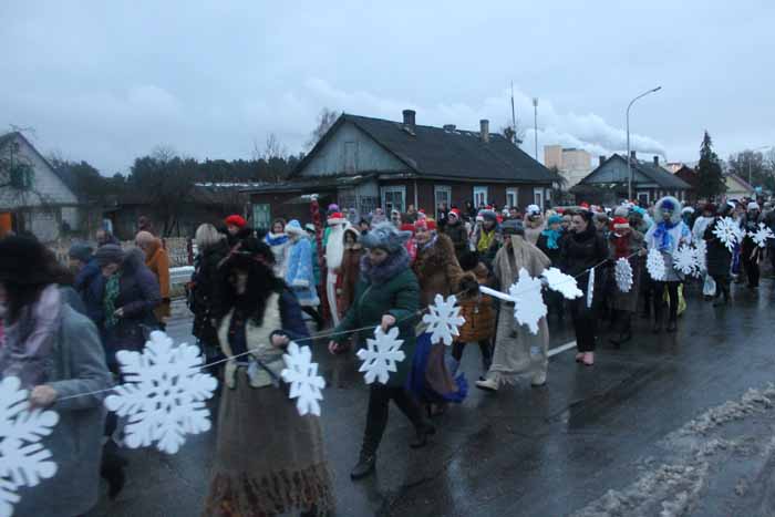 Деды Морозы и Снегурочки, Поросята и Собачки, Куколки и Снежинки, Клоуны и Бабки Ёжки, Гномы и другие колоритные сказочные персонажи красочной колонной прошли по улице Советской от районного центра культуры до главной городской ёлки.