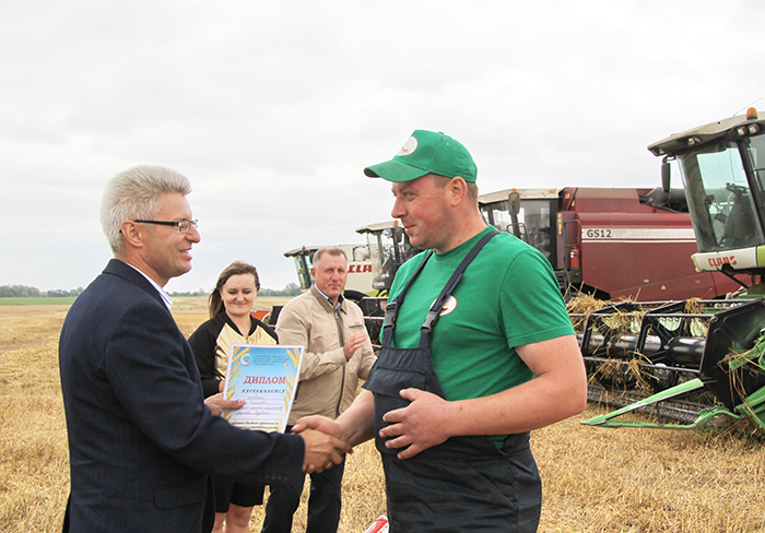 В филиале «Дубно» ОАО «Агрокомбинат «Скидельский» тысячу тонн зерна вместе с рапсом намолотил комбайнер Валерий Шагун. Он вышел в лидеры районного соревнования среди комбайнеров, работающих на комбайнах КЗС-1218. Награды ему вручили Юрий Костоломов и Виктор Метлюк, а также руководитель сельхозпредприятия Сергей Сыско.