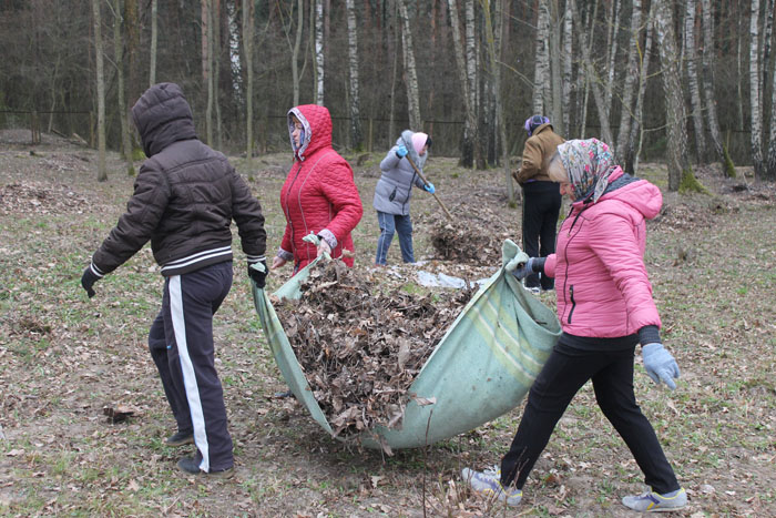 Предстоящий «фронт работ» для вновь прибывших помощников определён: женщины очищают территорию сквера от листвы и накопившегося за зиму мусора, чистят бордюры, мужчины будут заняты уборкой мебели в комнатах спального корпуса, где вскоре начнутся ремонтные работы. Направляемся туда и мы.