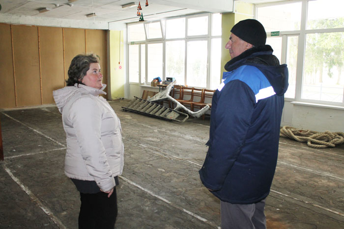 – Уже закуплено оборудование для детей младшего и старшего возраста. Это силовая станция, гребной тренажёр, велосипедная и беговая дорожки, боксёрские груши и другой спортинвентарь, – перечисляет Людмила Ивановна и вместе с завхозом Владимиром Прокашко проводит нас в помещение, которое ждёт ремонта.