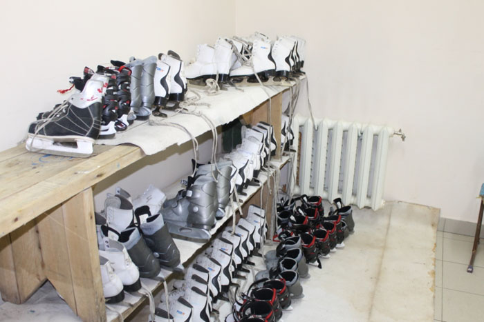 А для тех, кто не обзавёлся личными коньками, работает прокат спортивного инвентаря. Так, час проката коньков обойдётся в 2 рубля 60 копеек. В наличии – все размеры, начиная от совсем маленьких детских и заканчивая взрослыми.