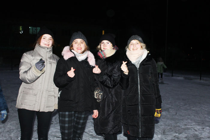 С отличным настроением пришли на каток и одиннадцатиклассницы второй городской школы Анна Лагоцкая, Лера Дужик, Алина Рабецкая и Карина Рогацевич.