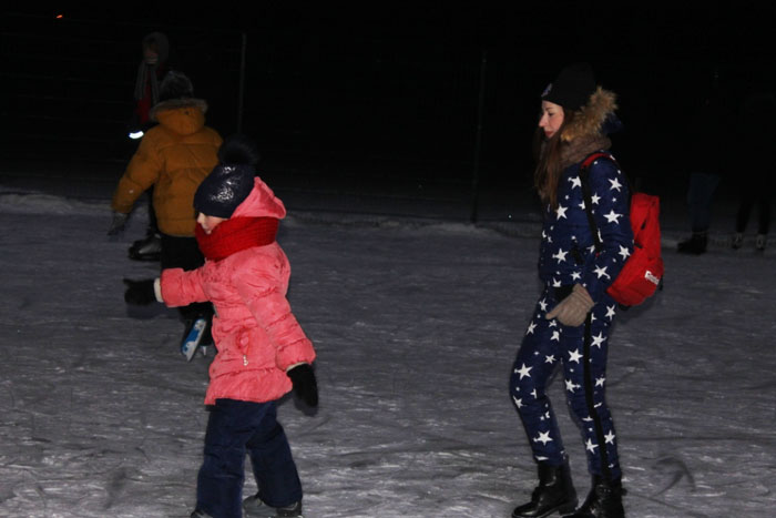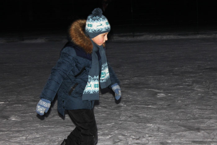 Сегодня вечером мы побывали на катке у городского стадиона. Здесь играет музыка, площадка хорошо освещена, рядом – друзья, готовые дать урок по навыкам катания и поддержать в буквальном смысле слова. Так что кататься – одно удовольствие!