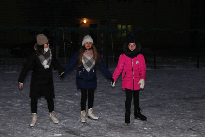 - В прошлом году мы катались на площадке по улице Зелёной, а в этом решили попробовать свои силы здесь, у спорткомплекса, и не ошиблись. Всё здорово! Нам здесь очень нравится! И лёд хороший, и музыка заводная, и света много, - поделились впечатлениями семиклассницы третьей городской школы Анастасия Жук, Ксения Тарарук и Вероника Радикевич. Девчонки рассказали, что кататься научились давно, а сейчас оттачивают свои умения и добавляют какие-то новые элементы, делятся друг с дружкой некоторыми секретами этого зимнего занятия.