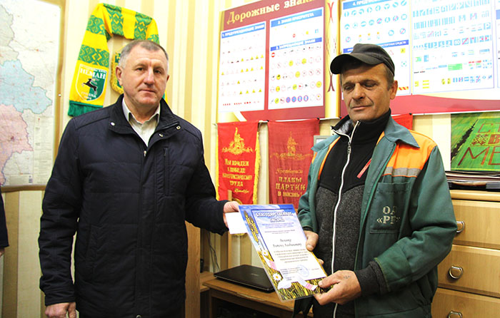 Искренне поздравил коллектив завода с праздником и отметил достижения председатель районной профсоюзной организации работников агропромышленного комплекса Виктор Метлюк. Он вручил Благодарственное письмо трактористу-машинисту Антону Величко за добросовестный труд, активное участие в профсоюзной жизни.