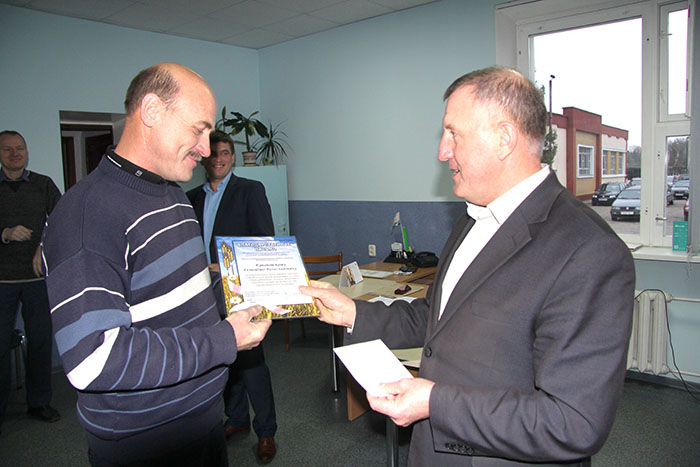 В этом успехе есть большая заслуга как непосредственно сельхозпроизводителей, так и организаций, обслуживающих аграрный сектор. Лучшие труженики накануне профессионального праздника – Дня работника сельского хозяйства и перерабатывающей промышленности отмечены наградами районного исполнительного комитета, районного Совета депутатов, отраслевого профсоюза и других заинтересованных организаций. Вручить грамоты, дипломы, подарки и премии было принято решение непосредственно на рабочих местах.
