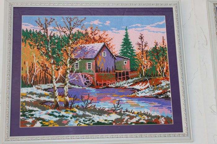 Лошади и природные мотивы – одна из самых любимых тем в работах Марии Станиславовны, которых у неё – целая галерея на стене квартиры. А сколько ещё украшают дома родных, знакомых – не перечесть. Уйдя на пенсию из Мостовской ЦРБ, она всёцело «отдалась» во власть своего увлечения. А вышивать научилась ещё в детстве.
