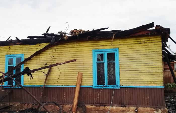 В результате пожара повреждена кровля хозяйственной постройки. Повреждено имущество внутри хозяйственной постройки