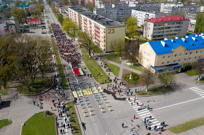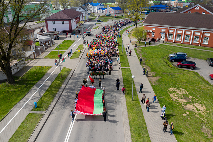 Яркое и красочное шествие шествие по улице Советской возглавила молодёжь Мостовщины. В их руках – полотнище Государственного флага, как символ единения, сплочённости поколений, любви к родной Беларуси.