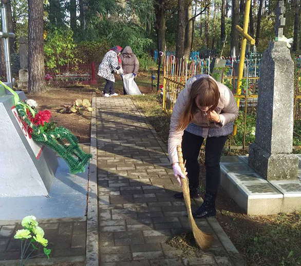 Выгребли мусор и подмели опавшие листья у памятника командира роты партизанского отряда «Красногвардейский» Фёдора Лобойко, могилы Виктора Колодинского, который также воевал в партизанском отряде «Красногвардейский», прошёл путь от командира взвода до комиссара отряда, принимал участие в открытых боях против фашистов, минировании железнодорожного полотна. За боевые заслуги был награждён орденом Красной Звезды.