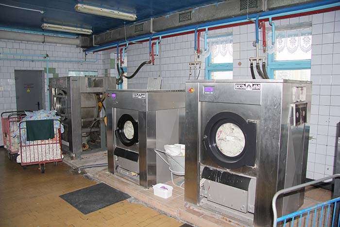 В прачечной установлены три современные стиральные машины на 30, 20 и 10 килограмм белья, которые мы получили с государственной поддержкой по программе «Комфортное жильё и благоприятная среда» на 2016– 2020 годы. Заменили также гладильный коландер. Есть хорошая сушилка.