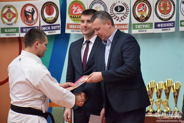 К спортсменам и руководителям делегаций с приветственными словами обратились председатель Белорусской федерации шотокан каратэ-до Андрей Вилькин, первый заместитель председателя Волковысского райисполкома Дмитрий Захарчук, председатель районного совета ветеранов Анатолий Игнатович. Они пожелали ребятам красивых стартов и успешных выступлений. Участники соревновались в разделах ката и кумитэ.