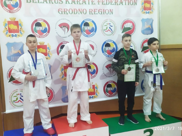 В республиканском турнире по каратэ «Grodno Open Cup» Денис Анисеня получил золото в кумитэ. Софья Гаврильчик награждена бронзой в индивидуальном ката и командном ката, а Дарья Семёнова – бронзой в командном ката.