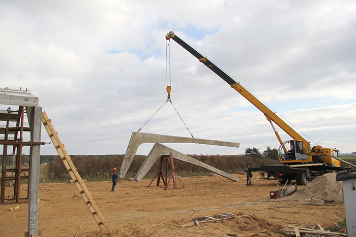 Вместе с Александром Еровченко мы побывали на строительстве коровника для сухостойных коров в Глядовичах. Уже сделан фундамент, строители возводят каркас помещения. Трудятся здесь высоквалифицированные специалисты: автокрановщик 6 разряда ОАО «Черлёна» Владимир Минкин и работники МПМК-155 электрогазосварщик Александр Пивоварчик, каменщик Геннадий Величко, монтажник Сергей Залевский, имеющие пятый разряд. Работы идут под руководством прораба Андрея Яроцевича.