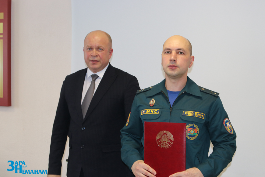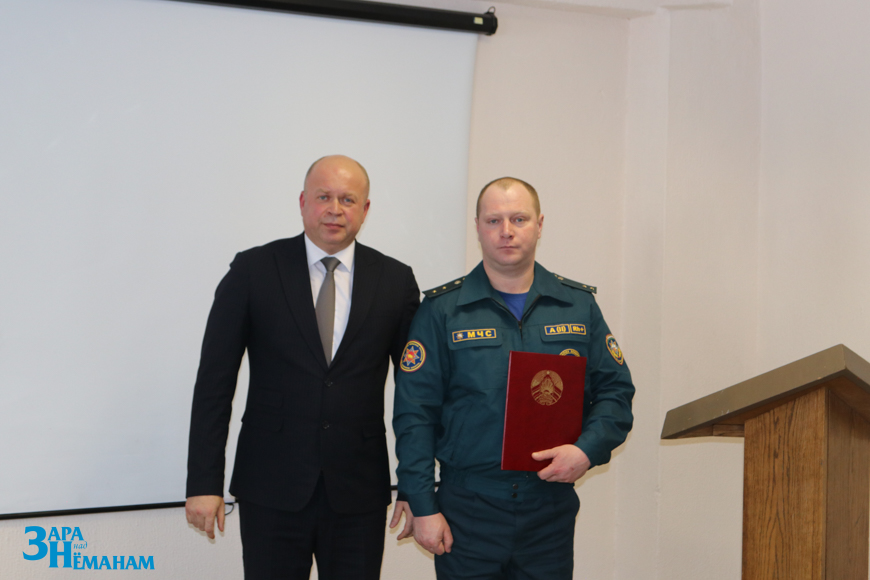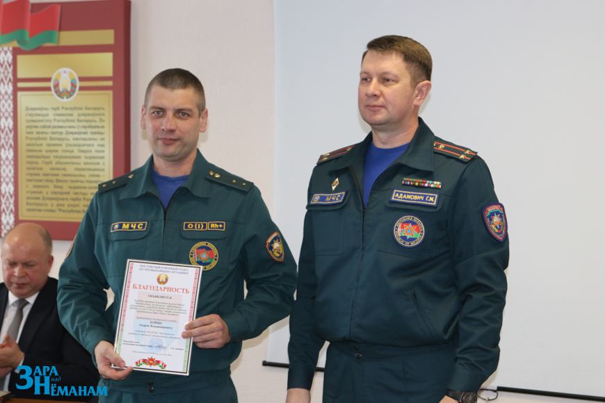 Председатель районного исполнительного комитета Андрей Санько поблагодарил работников МЧС за проделанную работу по предупреждению пожаров и ликвидации чрезвычайных ситуаций, пожелал здоровья, благополучия и дальнейших успехов. Он также наградил отличившихся сотрудников Мостовского РОЧС. За образцовое исполнение служебных обязанностей, высокое профессиональное мастерство Андрей Антонович вручил Благодарность председателя Мостовского райисполкома Ивану Лишко и Андрею Лапичу.