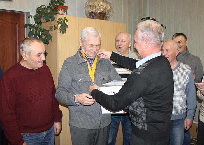 В этот же вечер в коллективе хора зародилась и новая традиция: самый старший из юбиляров награждает переходящей медалью младшего по возрасту. На этот раз П. А. Дольник свой переходящий приз передал С. П. Ващило.