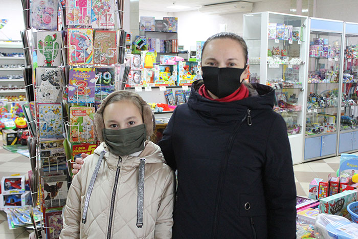 – Маски мы носим для безопасности своего здоровья и продавцов. Особенно опасно в магазинах в «час пик» – после 17.00, когда много людей собирается в небольшом помещении, без защитной маски точно не обойтись. Зайти сюда на пару минут или же долго стоять и выбирать товары на витринах – в любом случае есть вероятность «подцепить» невидимого захватчика нашего здоровья. Свою 10-летнюю доченьку Дашу я научила мерам безопасности: магазин и другие общественные места она посещает всегда в маске.