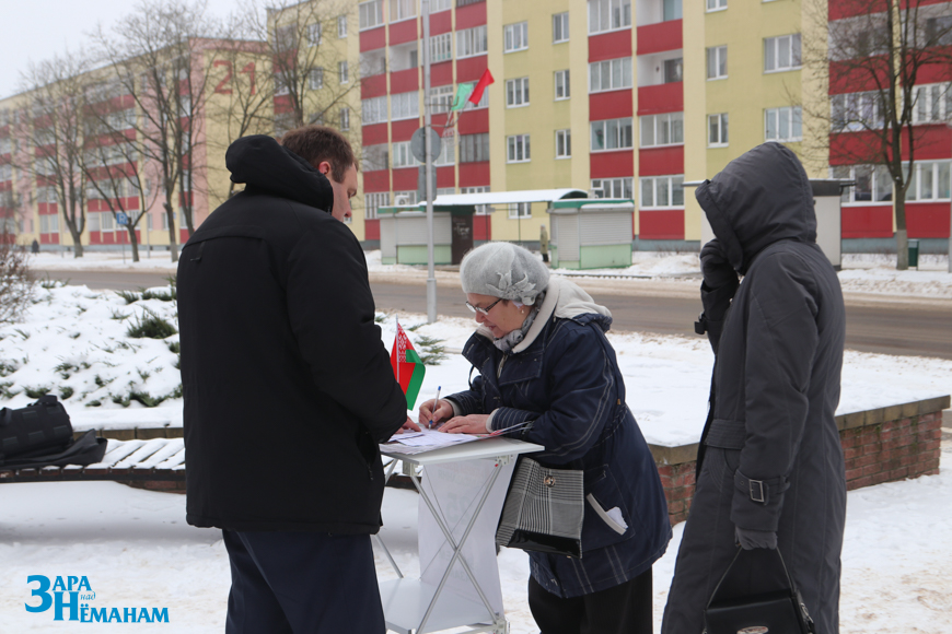 В г. Мосты, на центральной улице, прошли пикеты по сбору подписей в поддержку выдвижения кандидатов в депутаты.