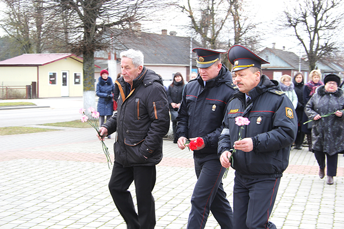Венки и цветы к памятнику на братской могиле возложили Юрий Валеватый и Валерий Табала, представители комиссариата, РОВД, РОЧС, районной ветеранской и других общественных организаций, трудовых коллективов.