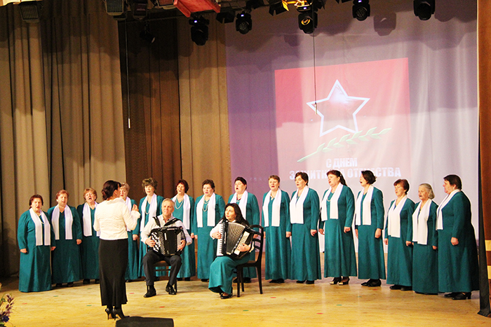 В праздничном концерте выступили наиболее известные и заслуженные творческие коллективы района и исполнители. Право открыть его было предоставлено народному оркестру народных инструментов под руководством Анны Плишань. Под аплодисменты присутствующих он исполнил попурри на темы военной лирики.