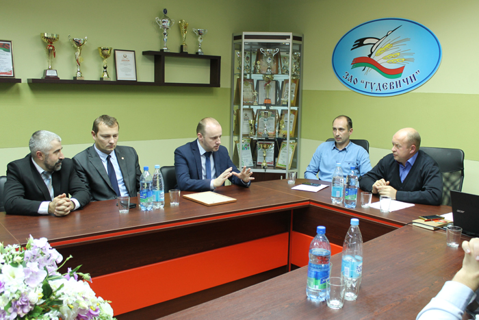 Следующей остановкой в программе семинара стал агрогородок Гудевичи, где гостей вначале ожидала увлекательнейшая экскурсия в Гудевичский литературно-краеведческий музей, а затем знакомство с закрытым акционерным обществом «Гудевичи». О направлениях деятельности сельскохозяйственного предприятия, победах его спортсменов, достижениях творческих и дружных семей – настоящих властелинов села, традициях работы с молодёжью и ветеранами гостям рассказали директор хозяйства Андрей Санько, его заместитель по идеологической работе Андрей Полойко и секретарь первичной организации БРСМ Екатерина Андрушевич.
