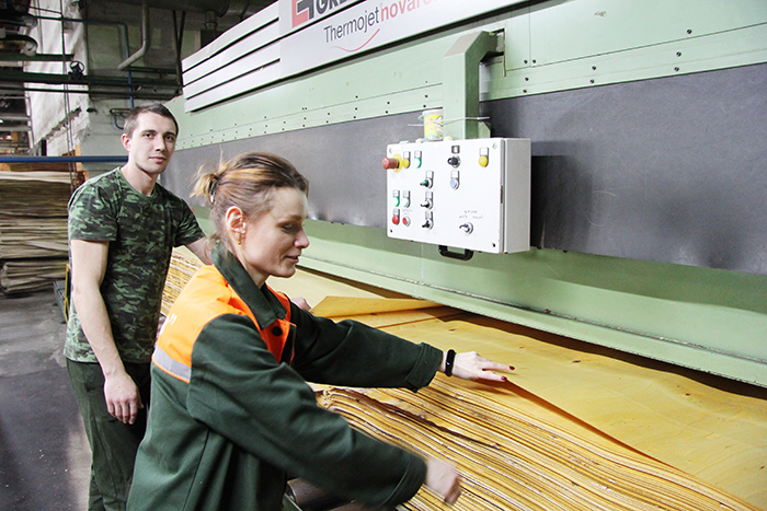 Завершается техническая модернизация пресса склейки шпона японской фирмы «Хокимото». Один такой пресс этой же фирмы для склейки большеформатной фанеры в цеху установлен и прекрасно показал себя в работе. На новом будем склеивать фанеру-квадрат, которая также пользуется спросом у зарубежных покупателей. Через несколько недель он даст первую продукцию. Уже подготовлены и обучены люди, которые будут работать на новом прессе. Он заменит четыре старых, которые отработали не одно десятилетие, и даст прибавку продукции не менее чем на 15 процентов. После демонтажа старого оборудования, на этих производственных площадях со временем установим новое. Так что год будет насыщенным и очень напряжённым.