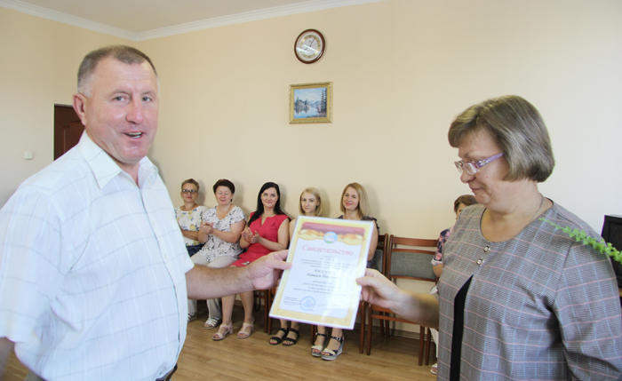 И ещё одну награду вручил в этот день представителю Мостовской сельхозтехники В.М.Метлюк. В 2018 году на Доску почета «Лучший профсоюзный активист Гродненской областной организации Белорусского профсоюза работников агропромышленного комплекса” занесена фотография казначея профкома предприятия Н.Н.Чекуть. Наталье Николаевне было вручено соответствующее свидетельство.