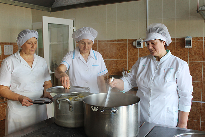 Но главное место на пищеблоке конечно же принадлежит шеф-повару Елене Ремыга и её коллегам: кладовщику Лене Астюкевич, поварам Елене Дольник и Елене Панкевич, кухонным работникам.