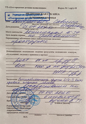 «У вашего ребёнка рак...» эти слова мы услышали на осмотре в 4 детской больнице у офтальмолога 12 августа 2020 года. С тех пор все как в тумане, ценности жизни переосмыслены...теперь перед нами длинный путь по излечению нашей малышки!