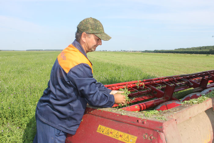 Разам са старшынёй раённай арганізацыі прафсаюза работнікаў АПК Віктарам Метлюком, дырэктарам філіяла “Дубна” ААТ “Агракамбінат “Скідзельскі” Сяргеем Сыско, яго намеснікам па ідэалогіі і сацыяльных пытаннях Маяй Слуцкай і старшынёй пярвічнай прафсаюзнай арганізацыі гаспадаркі Наталляй Семянчук імчым на сенажаць, дзе шчыруе трактарыст-машыніст Вячаслаў Москаль. Менавіта ён апярэдзіў механізатараў раёна на нарыхтоўцы кармоў.