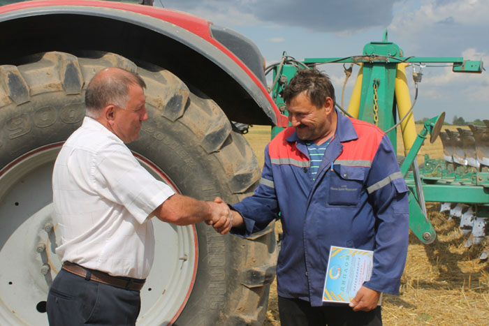 – Узорванне – адна з самых галоўных работ. Яе трэба выканаць вельмі якасна, бо любыя хібы пасля не выправіш аніякай тэхнікай. Таму і давяраем яе сталым, вопытным і добрасумленным работнікам, – падкрэсліў дырэктар сельсгаспрадпрыемства Уладзімір Пісарэвіч, віншуючы Валянціна Часлававіча з чарговай узнагародай.