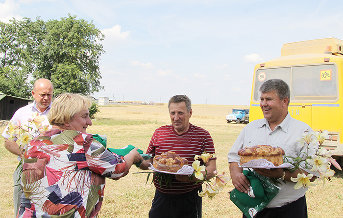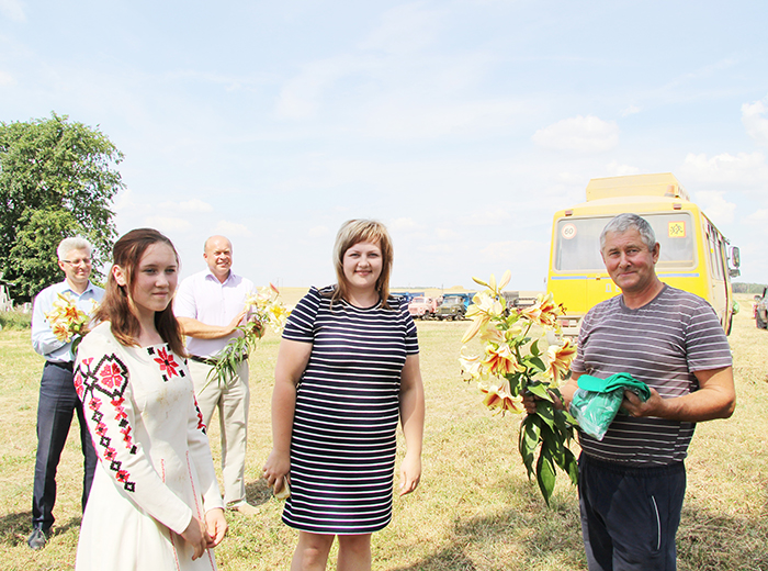 Андрей Санько вручил премии комбайнерам Геннадию Кравцевичу и Николаю Богдану, а также молодому комбайнеру Андрею Мешко, первыми намолотившим тысячу тонн зерна. Цветы и караваи в торжественной обстановке подарили им участницы художественной самодеятельности из Гудевичского центра досуга и культуры. Артисты также в этот день выехали в поле, чтобы приветствовать участников и передовиков жатвы. Под бурные аплодисменты они спели для комбайнеров и водителей любимые песни, которые были слышны далеко.