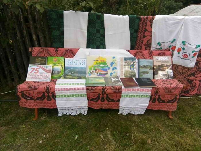 Для начала гостям предложили ознакомиться с книжной выставкой «Сонцам свеціць Прынямонне», посвящённой Году малой родины и 75-летию образования Гродненской области.