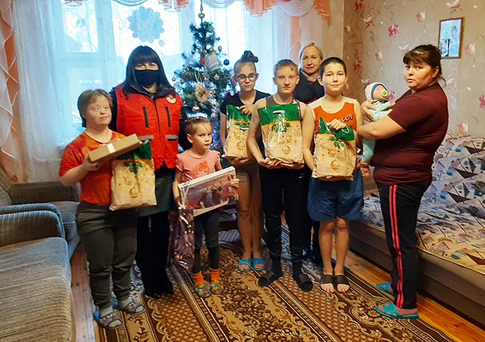 Затем Наталья Карпович и волонтёры вручили всем ребятам подарки от районной организации Красного Креста. У них в этот день было праздничное настроение.