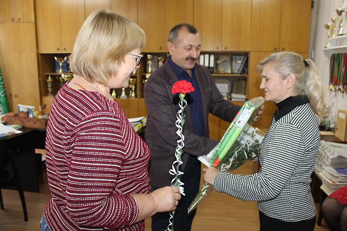 Тёплые слова поздравлений и пожелания здоровья, добра, семейного благополучия прозвучали от заместителя генерального директора – начальника управления по работе с персоналом Ольги Говоровой, председателя профсоюзной организации Виктора Булгарина и секретаря первички Анны Копоть в адрес Жанны Гизинской и Елены Никитич.